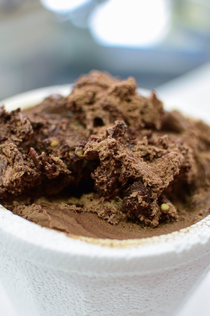 Mezcla helada a base de vegetales sabor chocolate, elaborada con aceite de coco y chocolates seleccionados.